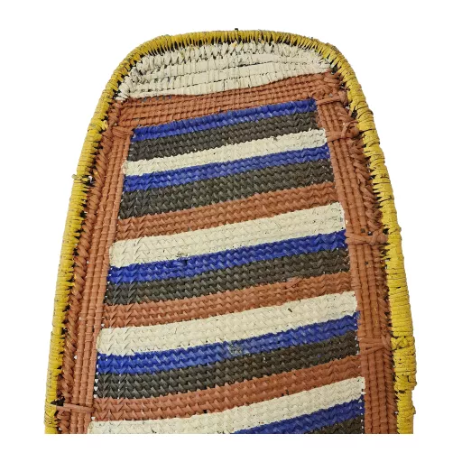 A vintage woven shield from the Congo. Approx 112cm tall x 41cm wide.
