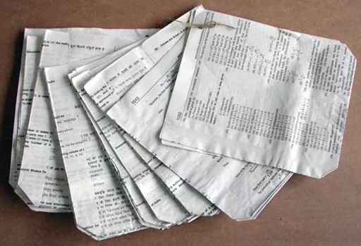 Bags made from recycled printed paper. Above examples are old exam papers! Approx. 21cm. x 18cm.