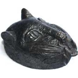 Very good resin copies of bronze Benin leopard head. Approx 13.5cm long x 8cm wide x 6.5cm high.