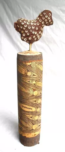 Engraved bamboo container with bone spatula. Approx 40cm tall, c1970s .